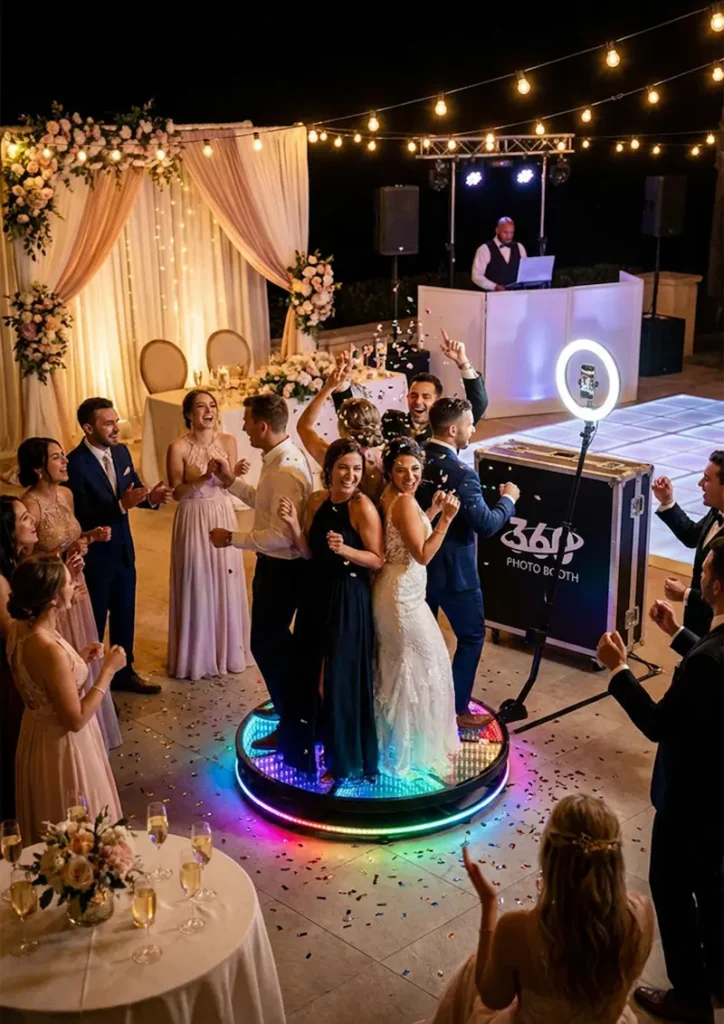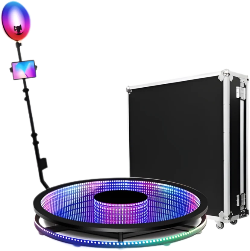 פלטפורמת °360 עם תאורתGBR LE ליצירת סרטונים מרהיבים בהילוך איטי. מצלמת HD המותקנת על זרוע מסתובבת הכוללת תאורת רינג למראה מקצועי וזוהר. אפקטים של הילוך איטי, בומרנג ופילטרים מותאמים אישית. אפשרות למיתוג והתאמת המסגרות והאנימציות לפי סוג האירוע שלכם. שיתוף מיידי ומהיר באמצעות קוד ,QR אימייל או .AirDrop התקנה מהירה, תפעול פשוט וחוויה בלתי נשכחת לאורחים