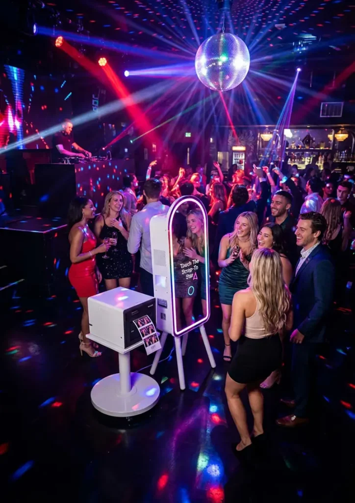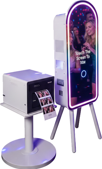 מראה אינטראקטיבית ענקית )מסך מגע( עם מסגרת תאורתBGB LED צבעונית ומרהיבה. מסך ברזולוציה גבוהה, מצלמת מובנית והפעלה פשוטה במגע. המראה כוללת אנימציות, אפקטים מיוחדים ואפשרות לחתימה אישית ישירות על גבי המסך. הדפסת תמונות מיידית באיכות פרימיום. התאמה אישית מלאה (מיתוג) של מסגרות