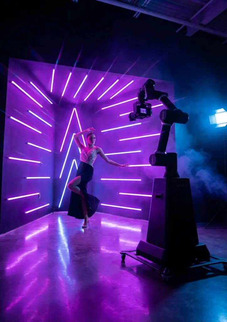 זרוע רובוטית ממונעת עם מצלמת 4 ליצירת סרטונים קולנועיים בתנועה חלקה להפליא. מערכת הכוללת תנועות ניתנות לתכנות, מעקב אוטומטי ותאורת LED מובנית. אפקטים של הילוך איטי, צילומי תנועה חברתיות. התאמה אישית מלאה של האנימציות והמעטפת הגרפית. אטרקציית פרימיום יוקרתית לאירועים יוצאי דופן