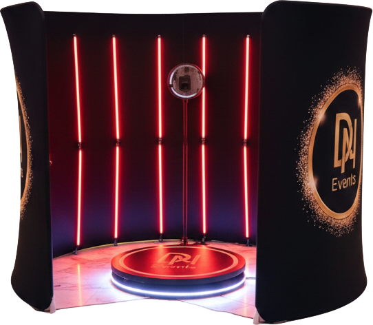 מבנה °360 רחב הכולל קשת מעוצבת וצינורות תאורת DEL למראה עוצר נשימה. מצלמת DH ממונעת עם זרוע מסתובבת ליצירת סרטונים חווייתיים וסוחפים. אפקטים של הילוך איטי, בומרנג ופילטרים בהתאמה אישית. פלטפורמה יציבה המאפשרת צילום של | עד 7 אנשים בו-זמנית. שיתוף מיידי באמצעות קודQ, אימייל או .irDrop התאמה מלאה למיתוג ולצבעי האירוע שלכם. חוויית אירוח יוקרתית